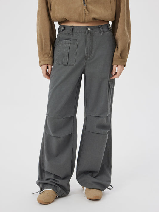 Blavely Denim Low Rise Drawstring Wide Leg Cargo Jeans