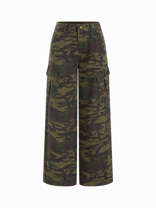 Cider Denim Camo Mid Rise Oversized Wide Leg Cargo Jeans