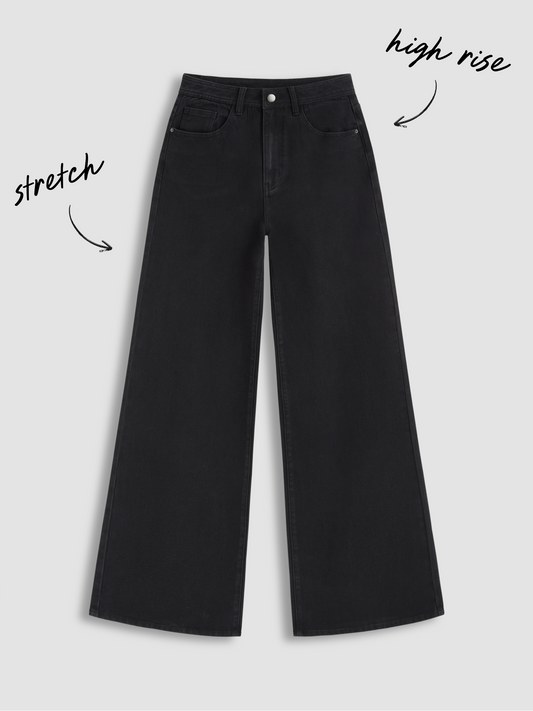 High Stretch Cider Denim Fleece-lined High Rise Wide Leg Jeans