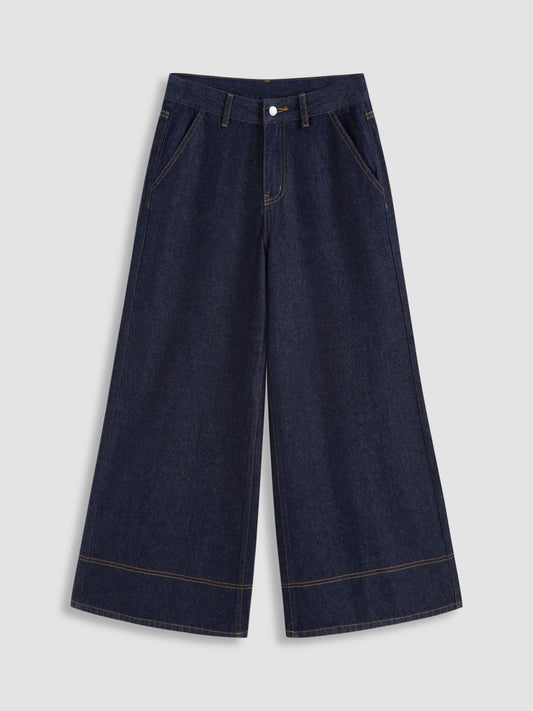 Blavely Denim Mid Rise Asymmetrical Button Wide Leg Jeans